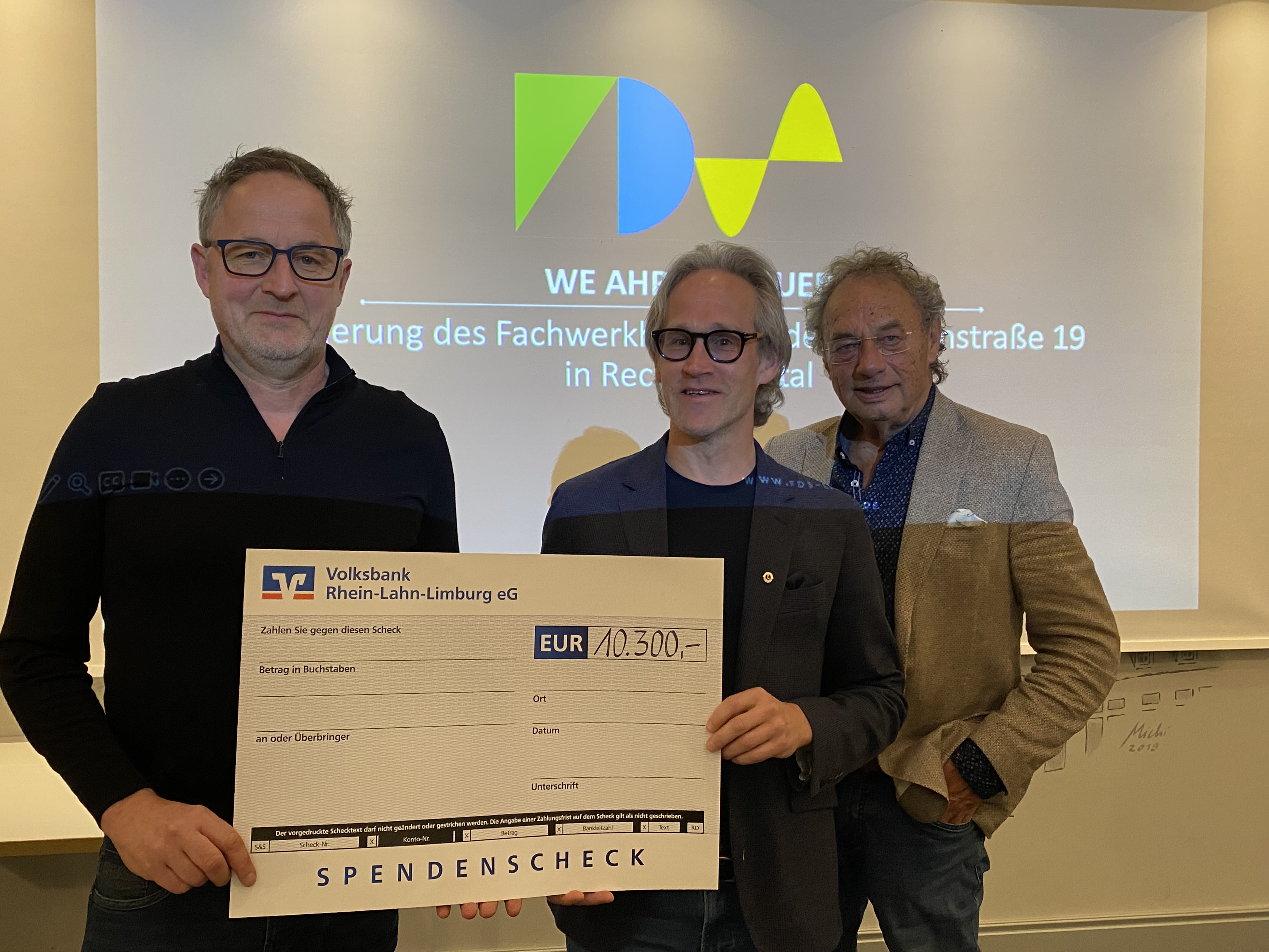Der Schulleiter der Friedrich-Dessauer-Schule, Stefan Laux, stellte dem Lions Club Limburg Mittellahn das Projekt „WE AHR DESSAUER“ am 23.03.26 beim Clubabend vor. Seit Anfang September 2025 renovieren Lernende und Lehrende der Friedrich-Dessauer-Schule im historischen Ortskern von Rech ein Fachwerkhaus, das von der Flut stark beschädigt wurde. Herr Laux präsentierte in seinem Vortrag den Baufortschritt, die gemeinsamen Erlebnisse und die besondere Aufbruchstimmung im Ort. Das Fachwerkhaus soll der Gemeinde Rech als Begegnungscafé dienen. Im Anschluss überreichte der Präsident, Lüder Schulz-Nigmann, einen Scheck in Höhe von 10.300 Euro. Herr Laux bedankte sich beim Lions Club Limburg-Mittellahn für die finanzielle und bei Manfred Michel (Landrat a. D.) für die wichtige konzeptionelle Unterstützung.
