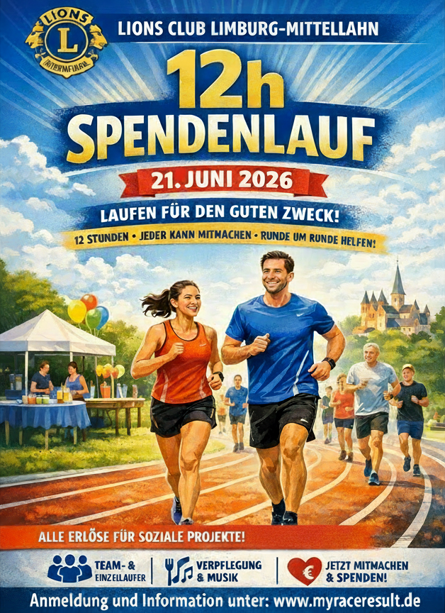 Der 1. Limburger Lionslauf bietet Gelegenheit, auf einer exakt vermessenen Tartanbahn für wohltätige Zwecke beliebig weit zu laufen und seine Leistung mit einer Urkunde dokumentieren zu lassen. Die Leistungen werden elektronisch erfasst. Um in die Wertung zu kommen, muss mindestens eine Runde gelaufen werden. Jeder kann in der Zeit zwischen 7:00 und 19:00 so viel und so lange laufen, wie er/sie möchte. Die Veranstaltung dauert 12 Stunden und findet bei jedem Wetter statt.